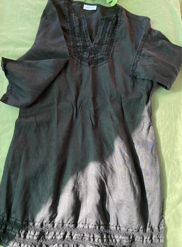 Сукня чорного кольору , неймовірно легке , з вишивкою . На розмір s-m . Будуть питання , задавайте , з радістю відповім 🤗