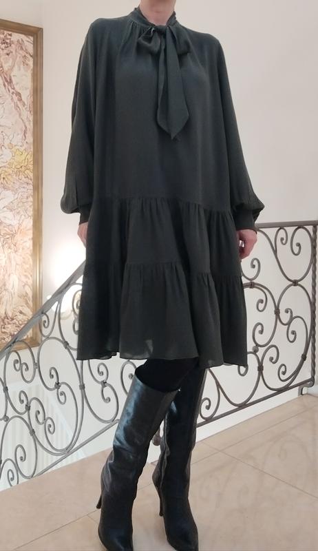 Платье, темно серо зеленое, красивый цвет. Длина 103 Пог 62 Размер указаемые 40(л), но, как крой свободный, одевала на м.