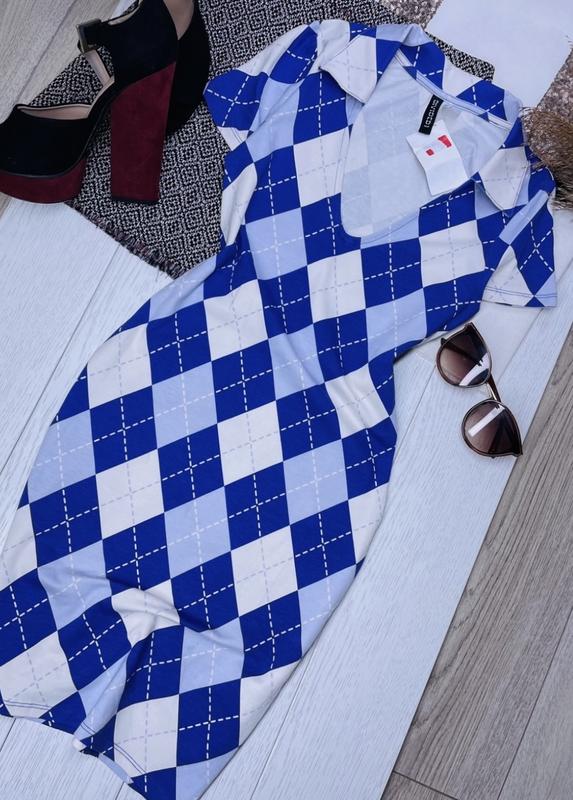 Нова трикотажна сукня s плаття по фігурі коротке плаття в клітинку плаття з коміром