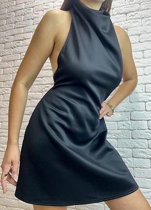 Міні-сукня А-силуету з високим коміром, чорного кольору, драпірована. Стан ідеальний Розмір М