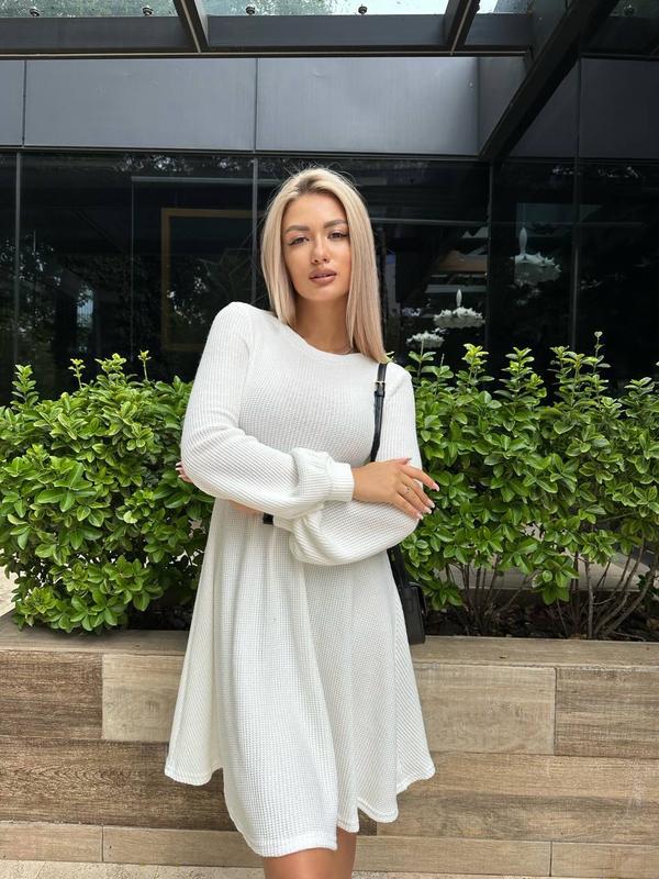 Біла вʼязана сукня жіноча с, м, л, хл довгий рукав мод 650