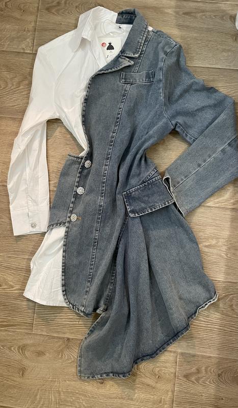 Довжина 86-106, груди 47, талія 39, бедра 50, рукав 55, плече 17. Асиметрія джинс+хб