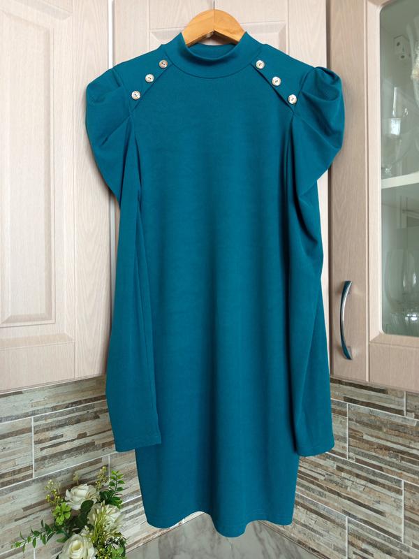 Изумрудное платье в рубчик, состояние новой, без дефектов, размер М, лучше на S. Длина 84 см, полуобхват груди 40 см, полу охват талии 34 см, полуобхват бедер 43 см, рукав 66 см, плечи 35 см Ткань хорошо тянется.