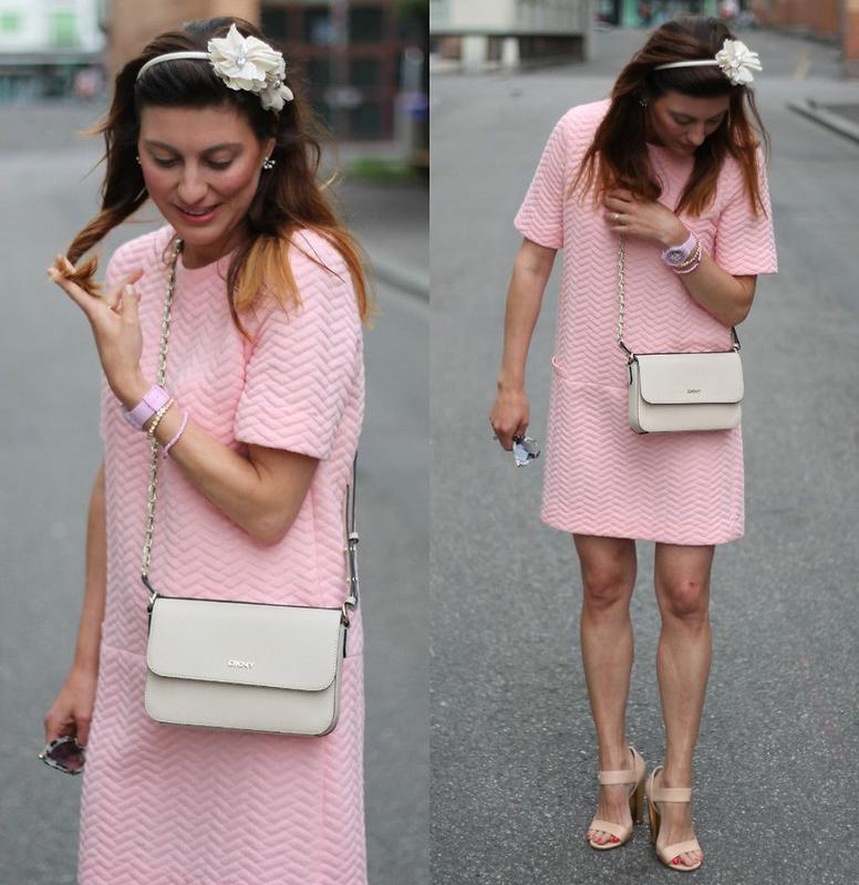 Рожева стьобана сукня з короткими рукавами, м'якенька тканина. Довжина 88см, пог 46, пот 46, пос 48см.