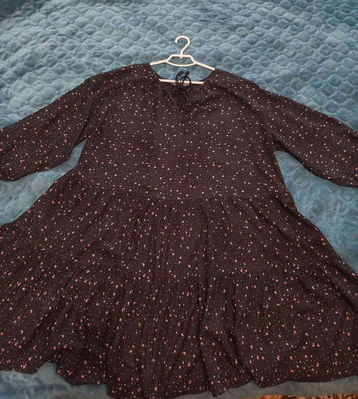 Платье из натуральной ткани-вискоза с принтом, не просвечивает. Рукав спущенный.Ткань довольно плотная можно и осень и зиму, кто любит натуральные ткани. На 5 фото показа есть микрозацепки, на расстоянии 20 см вообще незаметно плечі-86. длина 95 нот-69 ног-68 длина от воротника до конца рукава-67