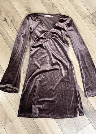 Дуже гарна велюрова сукня, з маленьким розрізом на грудях, рукава донизу трохи розширюються