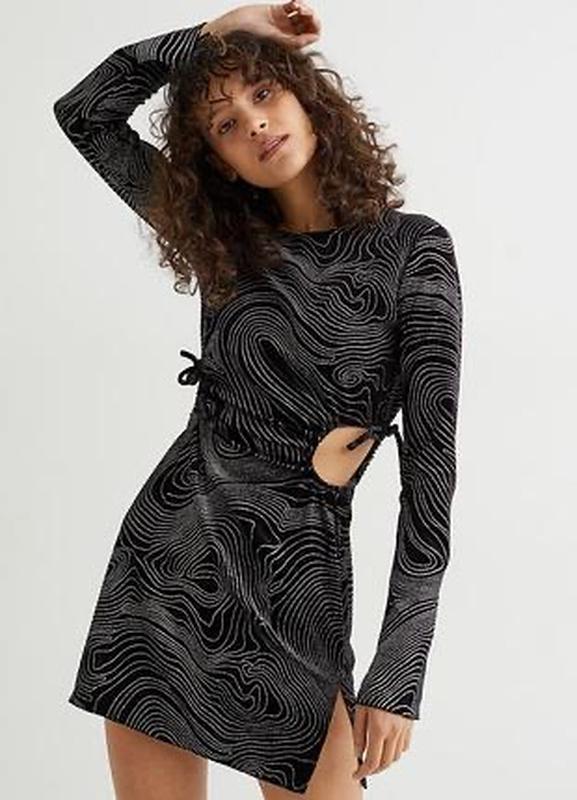 Чорна велюрова сукня з сріблястим абстрактним принтом від h&m