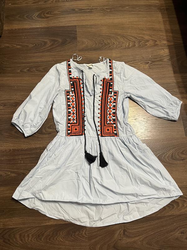 Напів об’єм: плечі 43 см, груди 49 см, талія 49см, низ 92 см. Довжина спереду 86 см, ззаду 94 см. Довжина рукава 42 см.
