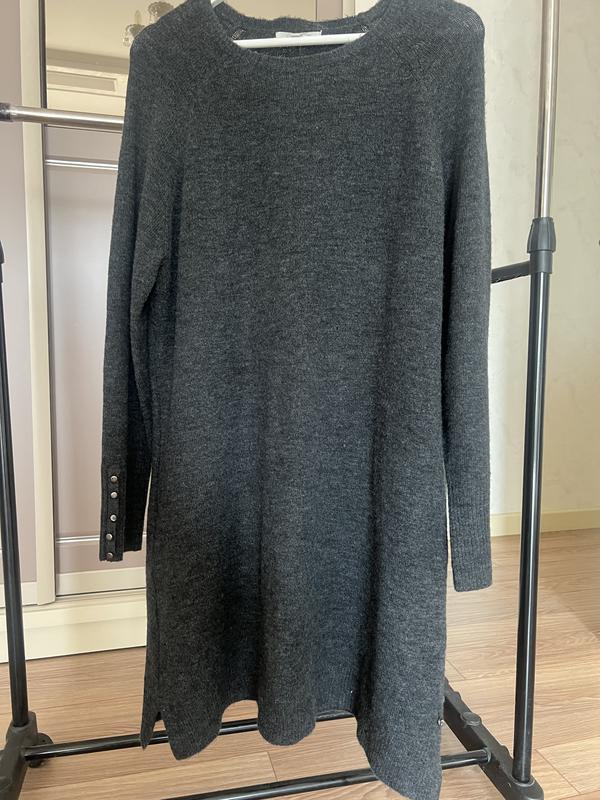 Продається ликмрне тепле плаття фірми Tom Tailor,, розмір Л,, на рукавах пробрендовпні гудзики, знизу по довжині плаття іде розріз, колір графвтовий модний