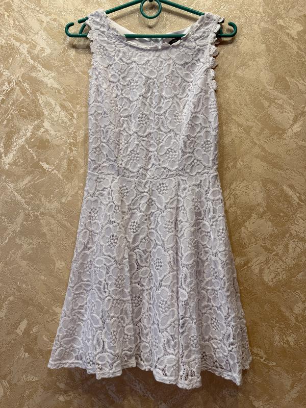 Біла мереживна сукня City Studio, розмір 3 🤍 Елегантна, з квітковим візерунком, приталеним силуетом і злегка розкльошеним низом. Має підкладку. Дефект майже не помітний