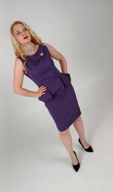 Платье в фиолетовом цвете с баской. Выполнена из костюмной ткани. Без подкладки. Имеет застежку в виде молнии.
