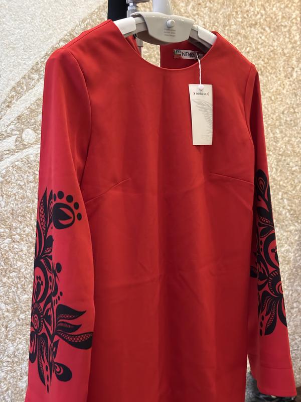 Стильна сукня червона з узором на рукавах. Розмір с , вільна