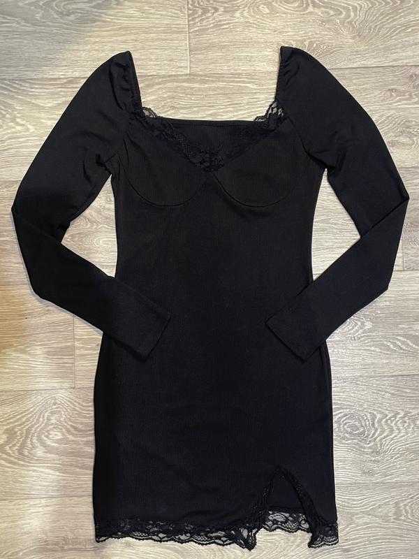 Напівобʼєм грудей: 34 Напівобʼєм талії: 30,5 Напівобʼєм стегон: 36 Довжина виробу: 66 Довжина рукава: 63 Весняно-літня жіноча модна трикотажна сукня з довгими рукавами і мереживним оздобленням.