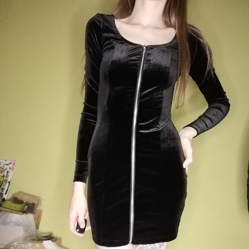 Женственное короткое платье из велюра на замочке с вырезом спереди и на спине