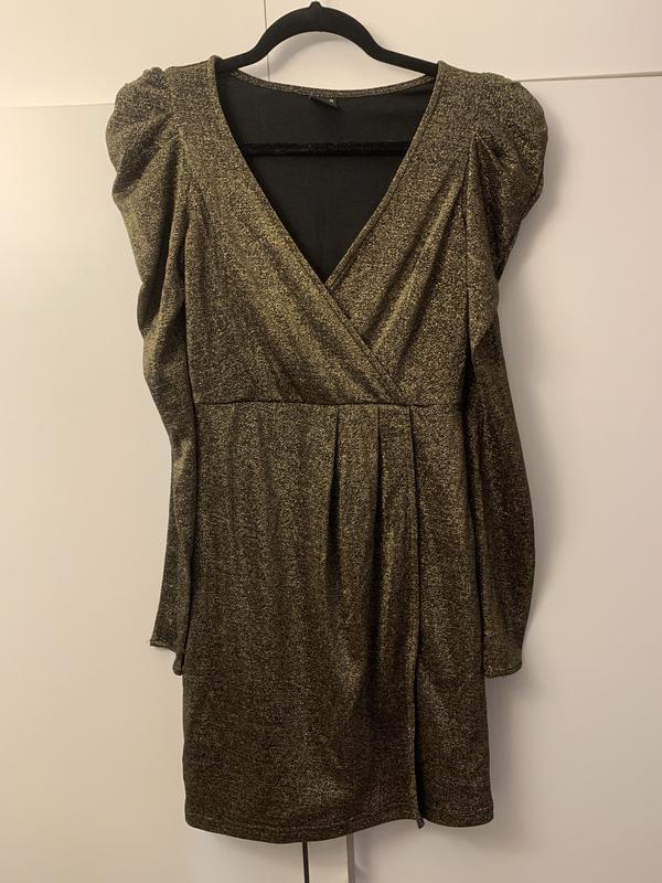 Золотиста жіноча сукня з розрізом на нозі Розмір XS Шведського бренду Gina Tricot Довжина 81 Рукав 61 ПОТ 34