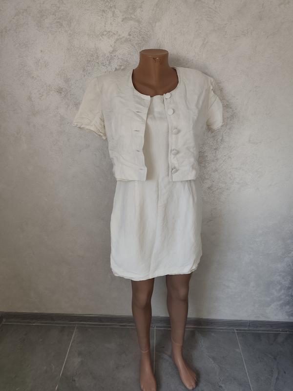 Платье с пиджаком ткань по типу лен на подкладке размер 38 Грудь от шва до шва 42 Талия-38 Бедра-46 Длина-80 Пиджак длина 42 комку 44