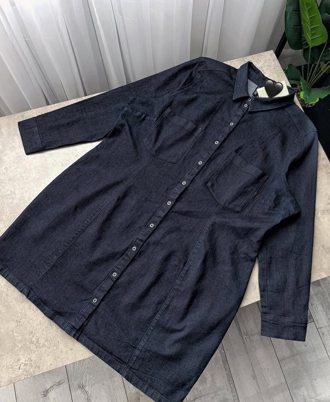 Сукня з деніму на кнопках H & М d i v i d e d Якість ✔️ Тягнеться ✔️ Номер: 2571 Стан ідеальний з етикеткою Розмір: 56/24/XXL Параметри пів обхват: Груди: 67-78 см Талія: 57-68 см Стегна: 65-80 см Довжина: 96 см Плечі: 44 см Рукав: 61 см