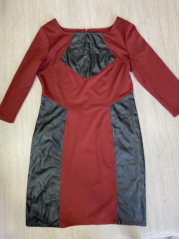 Сукня жіноча зі вставками з еко шкіри розмір XL, заміри на фото. Гарний стан