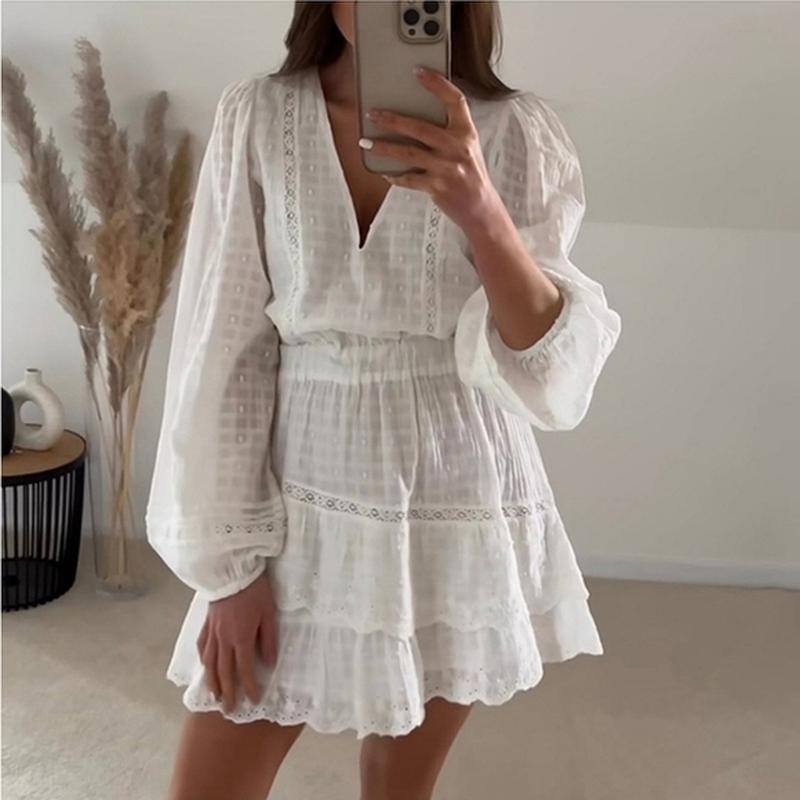 В наличии платье из батиста испанского бренда Zara в размере L. Плечи-38см ПОГ-52см ПОТ-37см(резинка!) ПОС-65см Длина изделия-88см Длина рукава-64см. Страна-изобник-Индия. Не просвечивается. Заявлена с официального сайта Zara Spain.