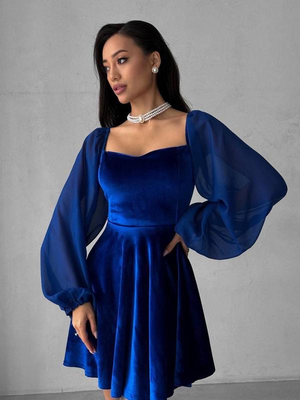 Бархатна оксамитова святкова сукня з шифоновими довгими рукавами