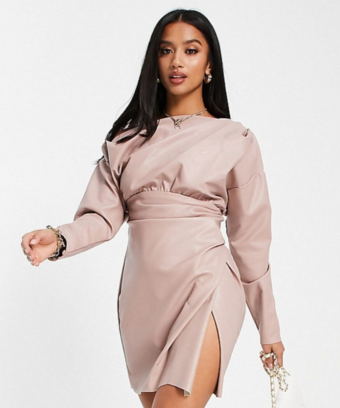 Очень красивое короткое платье из эко кожи от asos пудрового цвета