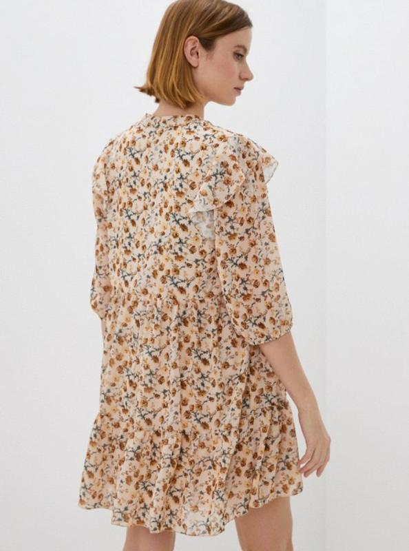 Легкое цветочное платье в романтичном стиле. Нежное платье свободного кроя из воздушного воздушного материала. Цветочный принт в теплых оттенках осени создает женственный и нежный образ 💛 ✨ Детали: Цвет: бежевый с цветочным принтом Рукав 3/4 Волани по низу та на плечах Свободный комфортный фасон Подкладка в виде самостоятельного платья (пот31см)
