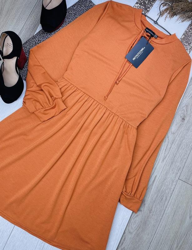 ✨Помаранчева коротка сукня кльош PLT Розмір:XXL Стан:нова,з біркою. Склад:95%поліестер,5%еластан. Особливості:трикотажна приталена сукня кльош.Обʼємні рукава знизу призібрані гумкою.На грудях завʼязка. ФОТО НА ТІЛІ НЕ РОБЛЮ! Заміри(від шва до шва): Плечі-40; Рукав-62; ПОГ-48,тягнеться до 66; Півобхват талії-40,тягнеться до 62; Півобхват стегон-70; Довжина-92; По низу(розкладений кльош)-80