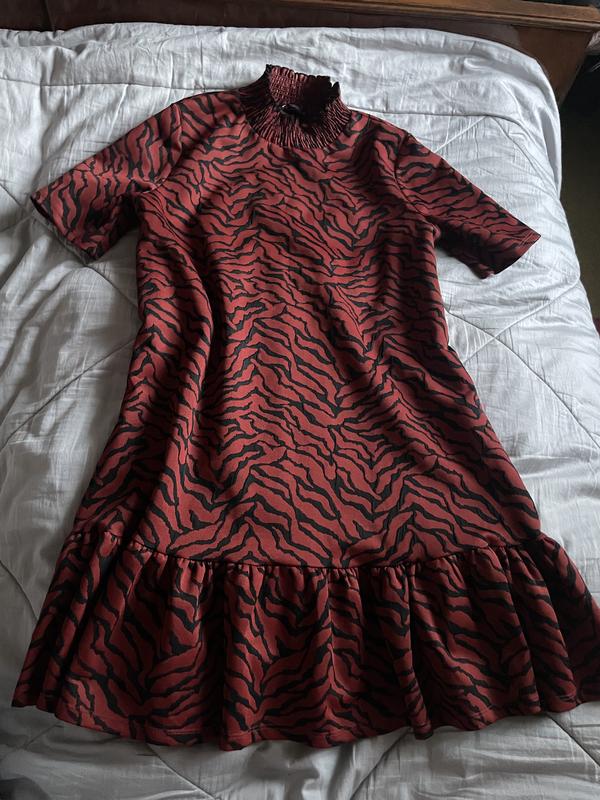 Сукня з теплого щільного матеріалу, підходить на холодну пору, має воротник стійку