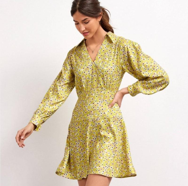 Нежное платье с широкими рукавами в цветочный принт короткое платье сатиновое с воротничко...