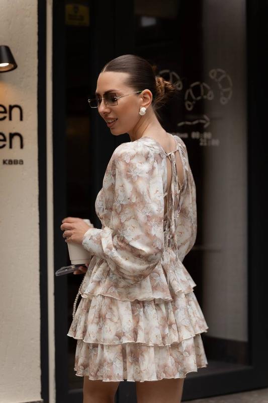 Сукня "Стелла" ✅тканина - шовковий шифон, бавовняний підклад ✅опис моделі - сукня сзаду на гумці, спинка на зав’язках ✅розмір універсальний 42-44 ✅кольори моделі - бежеві квіти, блакитні квіти (✔️можна замовити 40 46 48 50 52 розмір, чекати 2-6 робочих днів, +300) Заміри сукні "Стелла" Розмір універсальний 42-44 Довжина сукні по спинці - 81 см Довжина рукава з манжетом - 66 см Манжет - 11 см Плече - 6 см Обсяг грудей до 92 см Обсяг талії до 74 см Обсяг стегон до 100 см