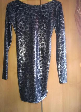 Платье в размере хс. Соответствует размеру. Тянется. Под змеиную кожу. Общая длина 70 см. Открытая спинка. Очень сексуально. Дополнительные замеры и фото не выполняет