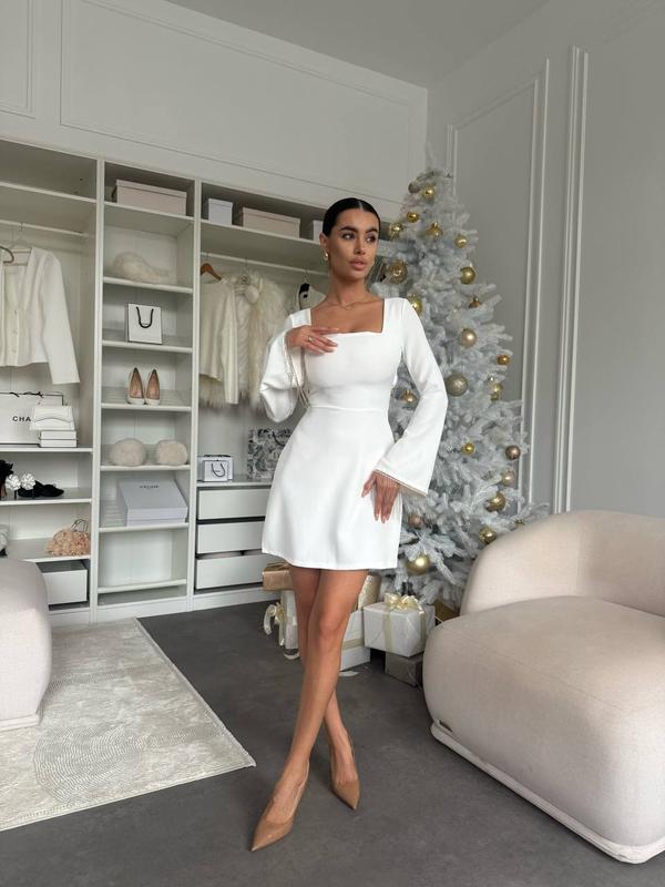 Хит продаж 🔥 Модель 5601 Женское платье Размерный ряд S,M,L,XL Тканина костюмна Цвет черный Очень красивое и нарядное платье, с стильными в этом сезоне подвесками по рукавам и спинке Застегивается верх на пуговицы, по спинке молния Супер качество