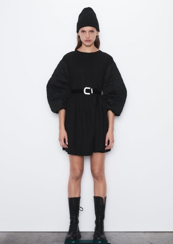 Безопасной оплатой новой по почте не отправляю Теплое платье, приятное к телу. Невероятные рукава. Круто под поям, но можно и без. Плечевой шов спущен. Стеганая спинка и рукава. Тянется. Стильно смотрится. Красивый состав Длина 90 см ПОГ 47 см ПОТ свободная ПОС свободные рукав от шеи 64 см