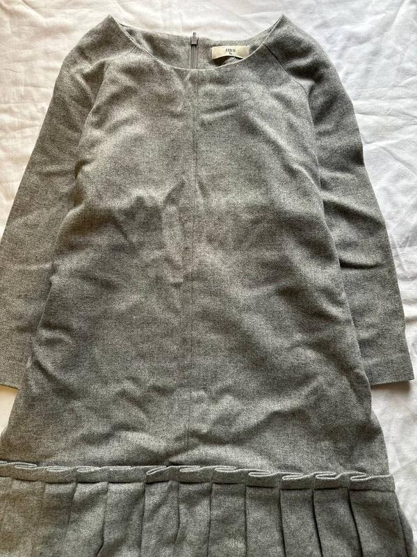 Очень интересное платье с шерстью в составе от недешевого бренда. Купила в сточном магазине себе. Одела несколько раз. Состояние отличное. Длина до колена снизу идет плиссерованная