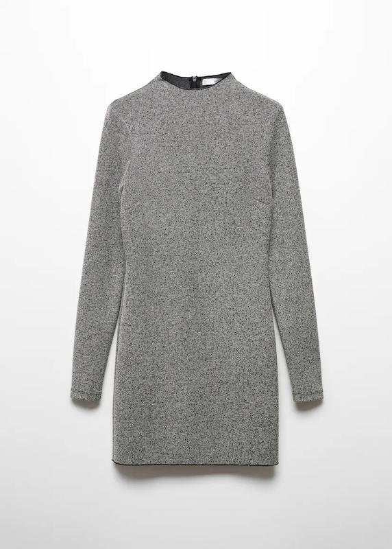 Mango Міні сукня з довгим рукавом Застібка на блискавку ззаду Тягнеться, на грудях витоки 98% поліестер, 2% еластан Середньої щільності XS, S, M