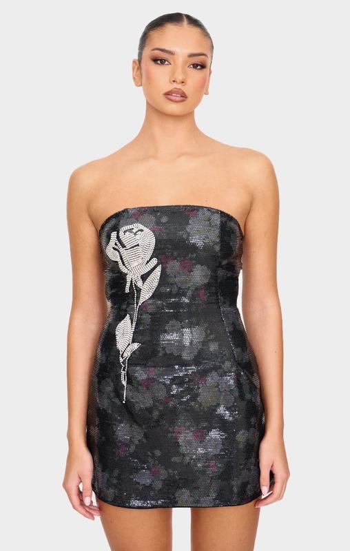 Нова святкова вечірня сукня -бандо від Pretty little things, верх сукні просиліконений , всі паєтки та камінчики на місці, розмір S, ОГ 88-92 см, талія 66-70 см, довжина 60 см