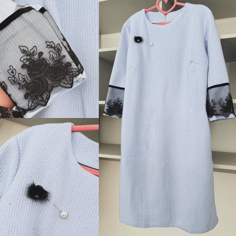 Розпродаж ‼️Ціна 350грн🔥🔥🔥Красива тепла сукня 🩵 Якісна🫶🏻 Красивий колір Розміри:Л,Хл Л:пог 50,поб 50, довжина 95 Хл:пог 52,поб 52, довжина 95см.