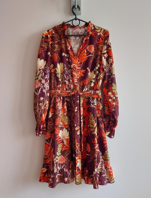 Красивое платье в осенних цветах shein, платье с длинным рукавом, р. xl