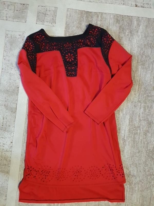 Красное платье на рассер м-л длина сперела 80 см пощада 90 см рукав 58 см грудь до 110 см