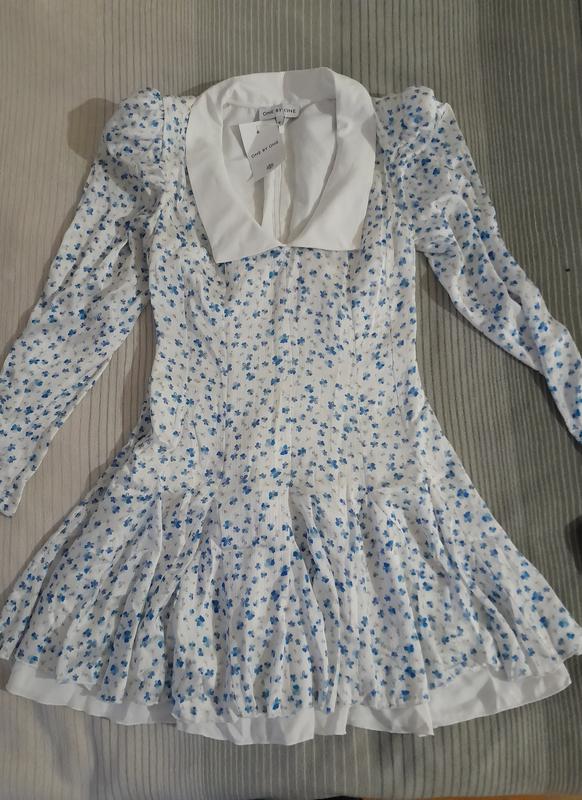 Новая с биркой. Не подходит размер. Платье не тянется, смотрите замеры Плечи 34см. Талия 35см. ПОГ 38см. Длина 83см. Рукав 61см. Платье изготовлено из высококачественной шифоновой ткани с напылением на легком подкладе. Имеет эффектно легкую текстуру, которая добавляет женственности и элегантности. Уникальные детали в виде объемных рукавов и отложного воротничка создают эффектный образ, добавляя изысканности и роскоши вид. Силуэтный фасон по талии и легкая юбка выгодно подчеркивают фигуру, создавая волшебный образ. Подойдет для любого важного мероприятия – от вечеринки до вечерней прогулки. Фиксируется молнией на спинке.