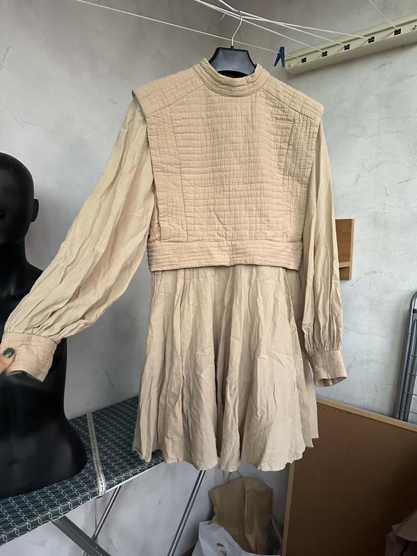 Сукня цікавого дизайну, як самурайська броня Тканина легка, а жилетка як утеплення Талія 40 Плечі 42 Рукав 64 Груди 43 Рукав ширина 28