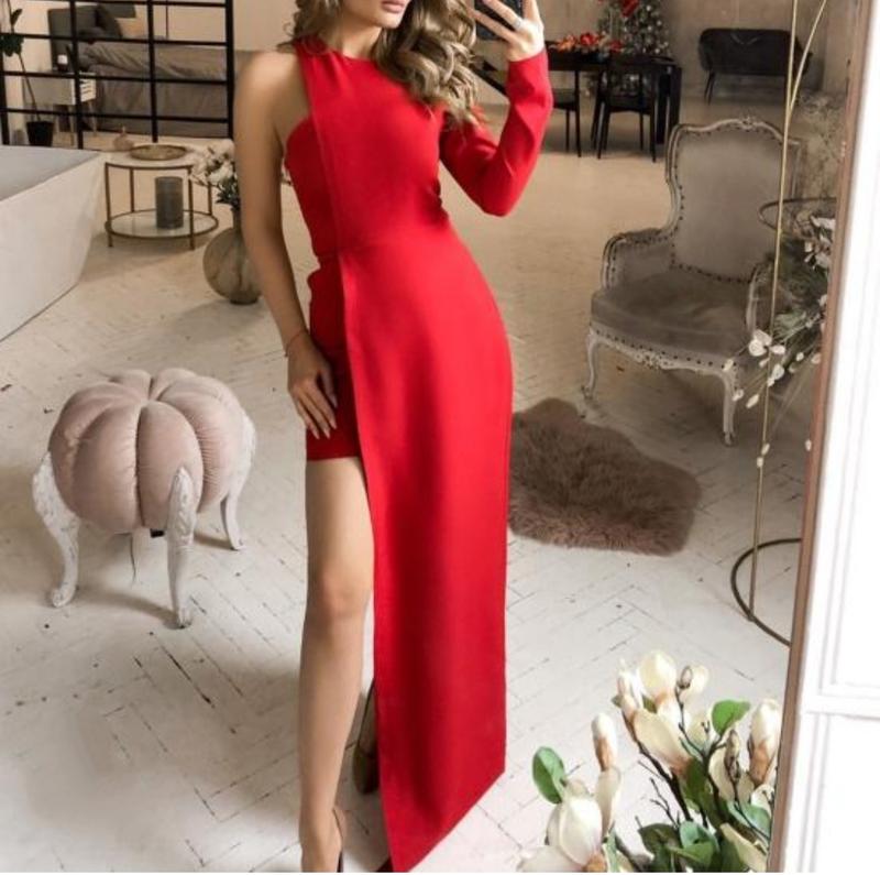 Шикарное платье с ассиметричным кроем Размер М Длина короткой части 81см. Полная длина 149см Плечи 30см Полуобхват груди 45см Длина рукава 60см