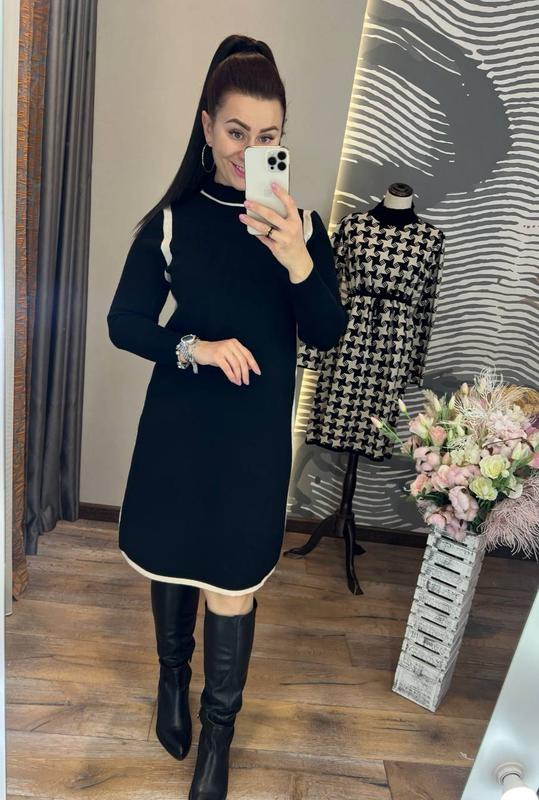 стильное и элегантное платье свободного кроя с небольшим воротником стойка, длинными рукавами и поясом в комплекте выполнено из трикотажа мелкой машинной вязки высокого качества с лаконичным декором, подчеркивающим красоту и стройность фигуры оно будет отлично смотреться на вас на работе и отдыхе и займет достойное место в вашем гардеробе размер единственный 42-46 длина 98 см, объем груди по изделию 94 см тянется до 102 см, объем бедра по изделию 106 см тянется до 116 см, длина рукава от шеи 67 см код 9827