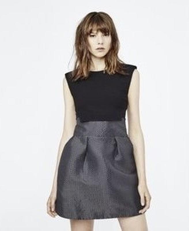 Витончена оригінальна міні-сукня бренду Maje з круглим вирізом, без рукавів. Контрастна силуетна спідниця, що тримає форму. Довжина 91 см; Довжина до талії 48 см; Напів об’єм грудей 42 см; Напів об’єм стегон 60 см; Напів об’єм талії 36 см.