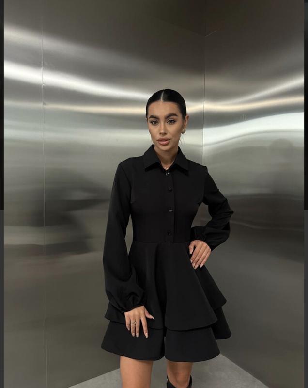 Модель 887 Жіноча сукня з воланами Розмірний ряд S,M,L,XL Тканина костюмка високої якості Кольори чорний, молоко, беж, червоний та шоколад Модель на ґудзиках, з подвійним воланом Можно вдягати під різне взуття та різний пасочок Супер якість Виш