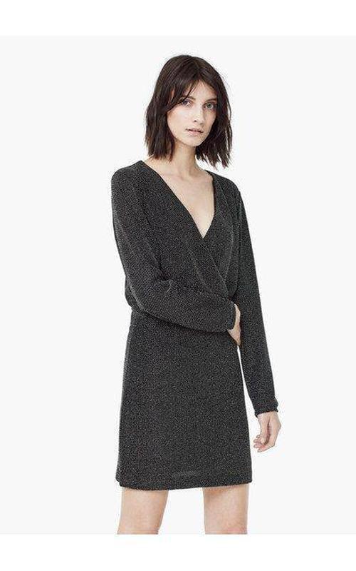 Стильна сукня середньої довжини з довгими рукавами Mango. В ідеальному стані. Сукня має елегантний V-подібний виріз, що додає їй жіночності та легкості. Виготовлена з м'якого матеріалу з легким блиском, вона ідеально підходить для вечірок, святкових подій або зустрічей. Розмір S Заміри: плечі 38 см пахви 44 см рукав 62 см пояс 34 см стегна 43 см довжина 89 см Матеріал добре тягниться.