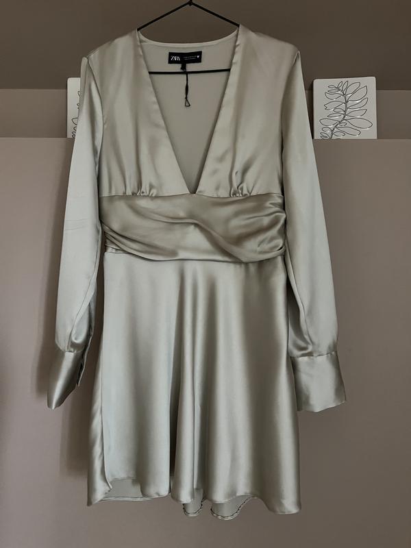 Сатинова сукня від Zara ,розмір М. Має незначні заціпки,непомітно. Заміри: ОГ-42/46 см ОТ-37/42 см ОБ-46/52 см Довжина-83 см Рукав-64 см Заміри зроблено в спокійному стані та трішки в розтягнутому вигляді,як на тілі буде виглядати, вказано напів об’єм. Дивіться інші мої оголошення - багато прекрасних речей по знижці + нове. Замовлення будь-яким зручним способом: -накладений платіж по передплаті 200 грн -повна оплата на карту Підпишись на мої оновлення та замовляй чудові брендові речі за мінімальними цінами!