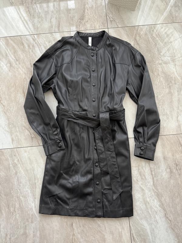 Чорна сукня розміру M з штучної шкіри. Mango Стан ідеальний, одягнена декілька разів Заміри: довжина від плеча- 90 см, рукав від плеча- 57 см, від пахви до пахви- 46 см, пояс по шву- 41 см