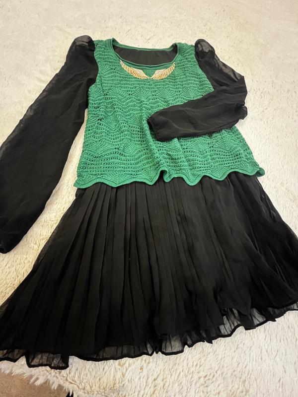 Оригінальна сукня вільного крою з подвійним ефектом (жилет та спідниця пліссе) Розмір S-M