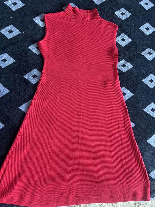 Красива сукня стійкою в поперечний рубчик,малинового кольору,останнє фото більш схоже так як колір не передає точний) Розмір 38(М),на ОГ-до 100,ОБ-до 105 буде гарно сидіти.